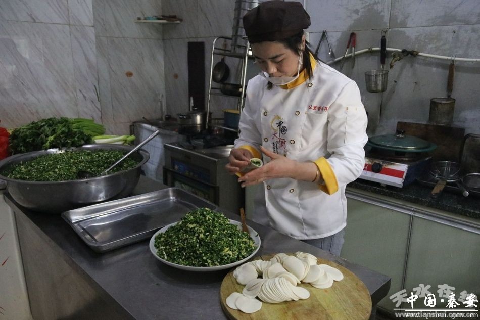 天剛透亮,在蔡林路街上的餃子館里,店主胡文倩就早早地來到店里忙碌著,備菜、洗菜、和面、剁餡、調(diào)餡,每道工序都在有條不紊的進(jìn)行著,只見一會兒功夫,面粉就在胡文倩手中變成一張張大小均勻的餃子皮,再放上足夠的餡料,經(jīng)她巧手的撮合,一個個有模有樣的餃子呈現(xiàn)在眼前,憑著多年的經(jīng)驗(yàn),整個制作過程她都拿捏的恰到好處。
