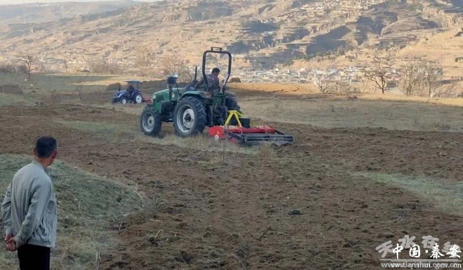 一場(chǎng)春雨過后,眼下正是春耕生產(chǎn)的大好時(shí)節(jié)。近日,在秦安縣王尹鎮(zhèn)尹川村南山灣的連片撂荒地里,兩臺(tái)旋耕機(jī)來回作業(yè)平整土地,一臺(tái)挖掘機(jī)揮舞巨臂調(diào)整地形,在短短的一上午時(shí)間,近60畝雜草叢生的荒地,變得平整而寬闊。