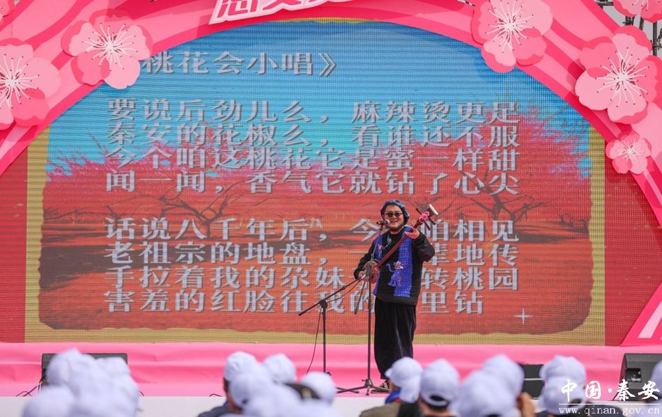 開園儀式上,天水市文旅局推介員推介了天水文化旅游資源。與會(huì)嘉賓及游客現(xiàn)場(chǎng)觀看了“在那桃花盛開的地方”主題文藝演出。演出中,舞蹈《盛世桃鄉(xiāng)》《在那桃花盛開的地方》《桃花謠》《詠桃》,讓大家感受到了桃花盛開的美景和桃鄉(xiāng)人民的熱情;北京科技大學(xué)為大家?guī)砹烁枨冻礁杞o黨聽》《世界同心》,甘肅本土民謠歌手張尕慫演唱了《談戀愛》《哎呀,不好了》《春暖花又開》《搖籃曲》,高亢的西北腔洪亮而充滿生機(jī),戲謔的歌詞配上西北民間曲調(diào),仿佛一股從泥土中鉆出來的生命力,為現(xiàn)場(chǎng)的游客帶來了一場(chǎng)視聽盛宴。活動(dòng)現(xiàn)場(chǎng),還進(jìn)行了特優(yōu)農(nóng)產(chǎn)品和特色文創(chuàng)產(chǎn)品展銷活動(dòng)。