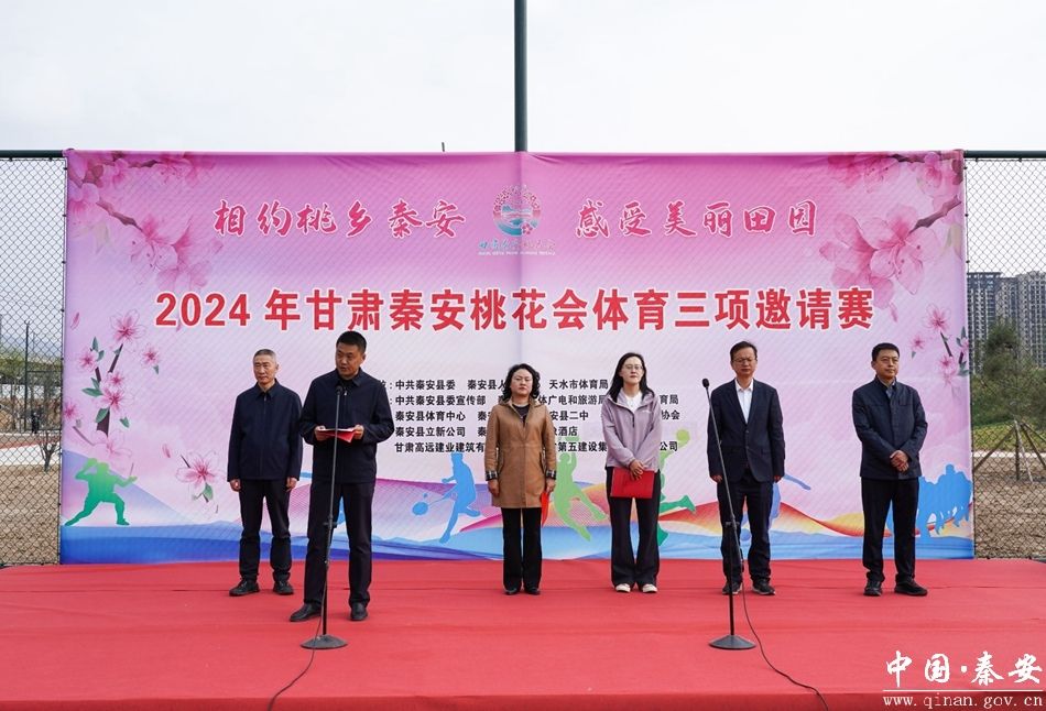 4月13日上午,2024年甘肅秦安桃花會(huì)體育三項(xiàng)邀請(qǐng)賽在縣體育公園開幕。天水市體育局局長(zhǎng)成紅梅,縣委常委、宣傳部部長(zhǎng)馬昊瑩,縣政府副縣長(zhǎng)鄭博,省內(nèi)16個(gè)縣區(qū)的42支兵乓球參賽隊(duì),市內(nèi)5縣2區(qū)的18支籃球和羽毛球代表隊(duì),以及贊助企業(yè)代表、縣直有關(guān)部門干部職工、運(yùn)動(dòng)愛好者共計(jì)400余人參加開幕式。