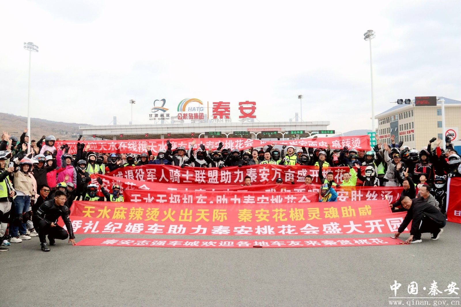 四月花如畫,滿園桃花艷。4月13日,來自全市的260余名摩友來秦安縣萬畝桃園賞田園美景、品特色美食、看精彩演出,為秦安桃花會助力。