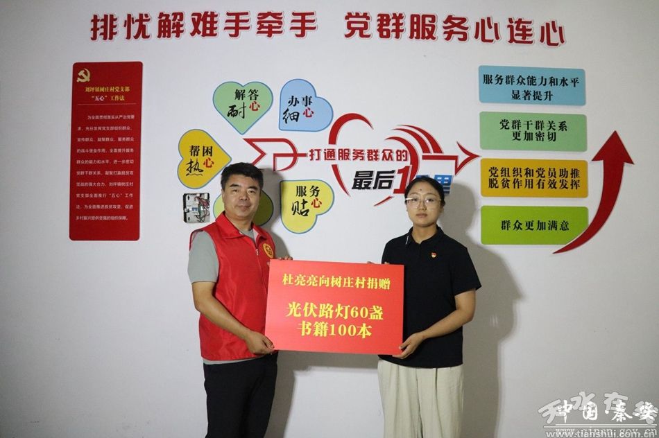 8月15日,秦安縣劉坪鎮(zhèn)樹莊村熱鬧非凡。幾個(gè)村民正蹲在地上組裝光伏路燈,扳手?jǐn)Q動(dòng)螺絲的“咔咔”聲、零件碰撞的輕響,混著不遠(yuǎn)處孩子們的笑鬧,在村子里一圈圈蕩開。這一天,樹莊村第一個(gè)大學(xué)生杜亮亮回來了,帶著60盞光伏路燈和100本兒童讀物,給這個(gè)靠“萬畝桃園”火起來的小村莊,添了份特別的禮物。
