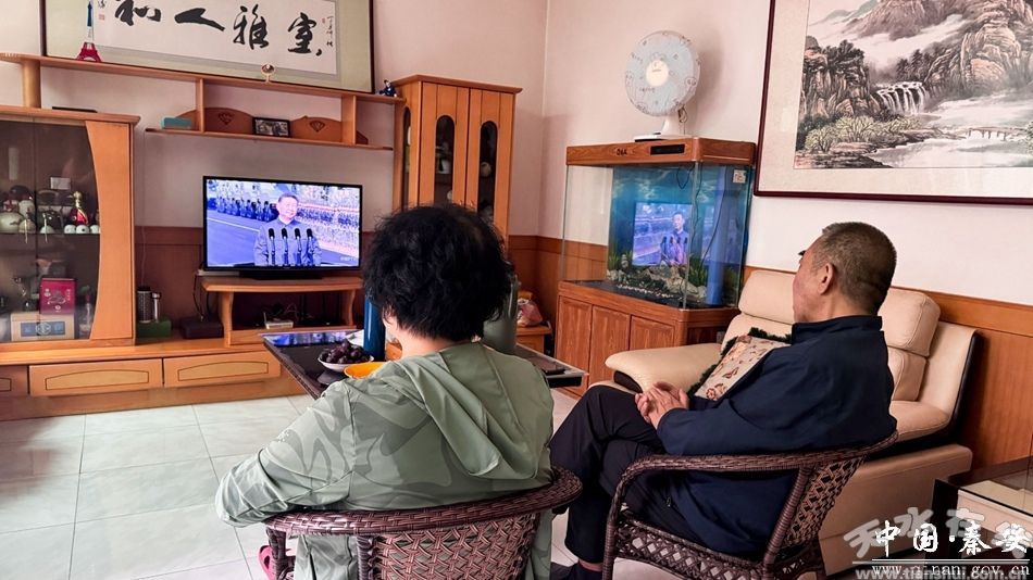 9月3日上午9時,紀(jì)念中國人民抗日戰(zhàn)爭暨世界反法西斯戰(zhàn)爭勝利80周年大會正式開始,群眾在家通過電視觀看直播。裝備方隊登場時,客廳里不時響起陣陣驚嘆,“看到整齊的隊伍,心里特別踏實。國家有這樣的軍隊,我們老百姓就能安心發(fā)展、安心過日子!比罕婈惷裆嬖V記者。