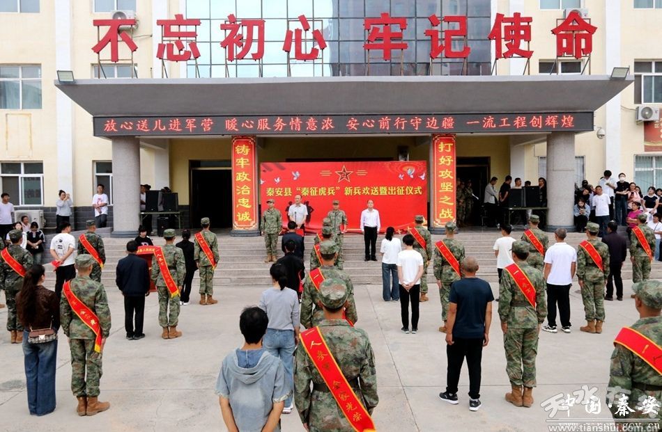 9月15日,秦安縣2025年下半年“秦征虎兵”新兵歡送暨出征儀式在縣人民武裝部舉行?h領(lǐng)導(dǎo)黨曉軍、張小軍,17鎮(zhèn)武裝部部長(zhǎng)和干事、新兵連全體人員及家長(zhǎng)參加出征儀式。
