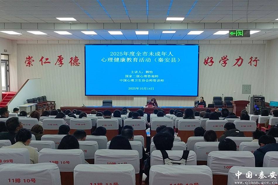 10月14日,“心向陽(yáng)光·逐夢(mèng)遠(yuǎn)航”2025年度全市未成年人心理健康教育活動(dòng)在秦安縣第二中學(xué)舉辦;顒(dòng)邀請(qǐng)國(guó)家二級(jí)心理咨詢(xún)師、中國(guó)心理衛(wèi)生協(xié)會(huì)師資講師韓怡開(kāi)展專(zhuān)題輔導(dǎo)。秦安縣委宣傳部、縣教育局相關(guān)負(fù)責(zé)人及秦安縣各學(xué)區(qū)分管副校長(zhǎng)、鄉(xiāng)鎮(zhèn)中心小學(xué)專(zhuān)兼職心理健康教師,局直學(xué)校分管副校長(zhǎng)、專(zhuān)兼職心理健康教師,部分學(xué)校班主任共計(jì)230余人聆聽(tīng)報(bào)告。