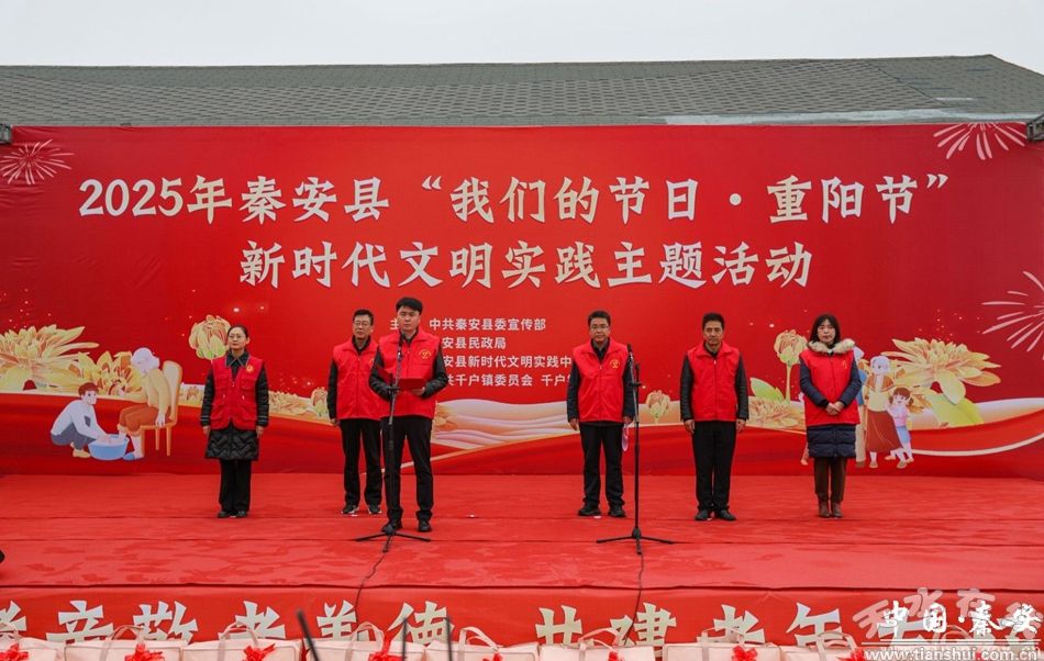 10月29日,2025年秦安縣“我們的節(jié)日·重陽(yáng)節(jié)”新時(shí)代文明實(shí)踐主題活動(dòng)在千戶(hù)鎮(zhèn)杏樹(shù)灣景區(qū)廣場(chǎng)舉行。縣委常委、宣傳部部長(zhǎng)陳升、縣人大常委會(huì)副主任任云飛、縣政協(xié)副主席雒小軍,縣直部門(mén)、千戶(hù)鎮(zhèn)鎮(zhèn)村干部群眾、老黨員等參加活動(dòng)。