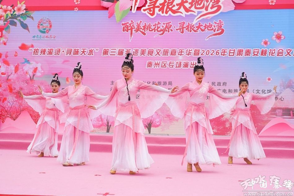 4月11日上午,“熱辣滾燙·尋味天水”第三屆非遺美食文旅嘉年華暨2026年甘肅秦安桃花會(huì)文旅宣傳推介秦州區(qū)專(zhuān)場(chǎng)演出,在劉坪鎮(zhèn)秦洼桃花堡景區(qū)主會(huì)場(chǎng)精彩呈現(xiàn)。這場(chǎng)精心編排的文藝盛宴,既展現(xiàn)了秦州區(qū)深厚的文化底蘊(yùn)與時(shí)代風(fēng)采,也為秦安桃花會(huì)注入了濃郁的人文氣息。
