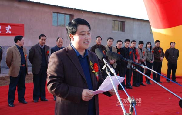 天水市農(nóng)辦主任馬文學(xué)宣布康健牛業(yè)項(xiàng)目投產(chǎn)儀式開始