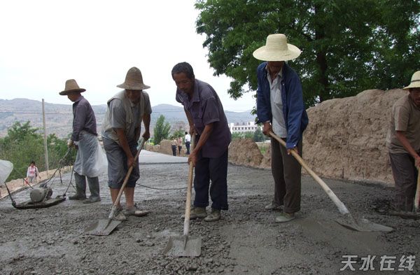 在清水縣永清鎮(zhèn)杜溝村,記者一進村便被眼前熱火朝天的鋪路場面所感染。但見全村幾乎所有有勞動能力的村民,挖土的挖土,平坑的平坑,手舞鐵鍬,在陣陣此起彼伏的歡聲笑語中,硬化的巷道在他們身后慢慢延伸……當記者問及他們鋪路的感受時,正揮锨鏟土的68歲的村民杜有剛激動地說,把村子里的爛泥路平整硬化成水泥路,政府真給咱老百姓辦了一件大實事、大好事,現(xiàn)在全村人對巷道硬化出錢出力,積極得很,鋪路時更是隨叫隨到。村支書張世榮告訴記者,在深圳創(chuàng)業(yè)的村民杜濤哲得知村上巷道要硬化時,一下就捐了3萬元。