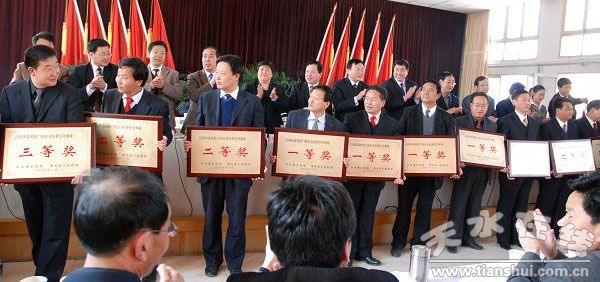 會(huì)議上,縣委副書(shū)記李寬余同志宣讀縣委、縣政府的獎(jiǎng)懲決定,縣領(lǐng)導(dǎo)為獲獎(jiǎng)單位頒獎(jiǎng)。同時(shí)縣領(lǐng)導(dǎo)同各單位簽訂了2009年度目標(biāo)責(zé)任書(shū)。
