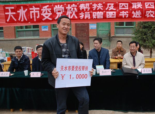 。ㄇ逅h委對外宣傳辦公室 劉海仙 楊兆康)4月27日,在學習實踐科學發(fā)展觀的關鍵時刻,天水市委黨校常務副校長李新一帶領全體班子成員及干部來到清水縣杜川村,專門開展幫扶和 “四聯(lián)四促”活動。清水縣縣委副書記李寬余等有關領導參加了活動。