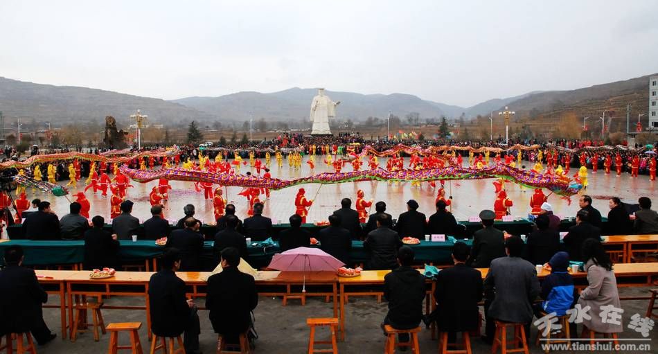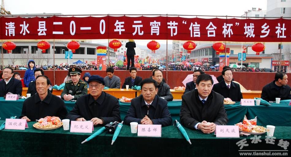 (清水縣四大組織領導、離退休老領導和來自城鄉(xiāng)數萬群眾一起觀看了精彩的社火表演)