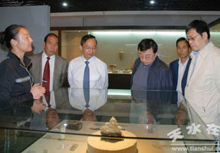 (清水縣委對外宣傳辦公室 朱建峰 楊兆康 張建新)9月7日,蘭州大學黨委書記王寒松,蘭州大學黨委常委、副校長安黎哲一行先后深入縣博物館、趙充國陵園、軒轅廣場對清水文化工作和城市建設進行了考察,縣委書記王振宇,縣委副書記劉中秋,縣委常委、副縣長蔡虎林,縣委常委、副縣長潘福生,縣委常委、組織部長魏勝奎陪同考察。