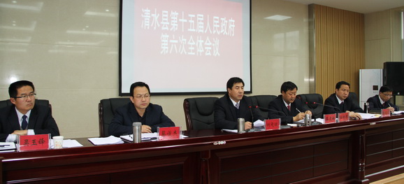 2月25日,清水縣召開第十五屆縣政府第六次全體會(huì)議。主要任務(wù)是認(rèn)真貫徹落實(shí)縣委十三屆十一次全委(擴(kuò)大)會(huì)暨經(jīng)濟(jì)會(huì)議、縣十五屆人大五次會(huì)議和全縣工作會(huì)議精神,對(duì)今年重點(diǎn)建設(shè)項(xiàng)目任務(wù)進(jìn)一步細(xì)化,明確責(zé)任,動(dòng)員縣政府全體組成人員和各鄉(xiāng)鎮(zhèn)搶抓時(shí)間,加快建設(shè),圓滿完成今年上半年的各項(xiàng)工作任務(wù)。出席會(huì)議的有:縣政府全體組成人員。應(yīng)邀列席會(huì)議的有:縣人武部、法院、檢察院負(fù)責(zé)人及政府辦副主任,縣直部門主要負(fù)責(zé)人,駐清垂管部門的主要負(fù)責(zé)人,各鄉(xiāng)鎮(zhèn)政府的鄉(xiāng)鎮(zhèn)長(zhǎng),有關(guān)二級(jí)單位的負(fù)責(zé)人,共92人。會(huì)上,組織學(xué)習(xí)了《中共天水市委、天水市人民政府關(guān)于表彰完成2010年度市政府目標(biāo)管理任務(wù)先進(jìn)縣區(qū)的決定》,《中共天水市委、天水市人民政府關(guān)于兌現(xiàn)2010年度人口和計(jì)劃生育工作目標(biāo)管理責(zé)任的獎(jiǎng)勵(lì)決定》,《中共天水市委、天水市人民政府關(guān)于表彰2010年度全市農(nóng)業(yè)農(nóng)村重點(diǎn)工作先進(jìn)縣區(qū)的決定》,《天水市人民政府辦公室關(guān)于2011年度目標(biāo)管理責(zé)任書考核工作的通知》和縣政府辦公室《關(guān)于2010年度市政府目標(biāo)管理責(zé)任書完成情況的通報(bào)》?h發(fā)改局、教體局、工信局、公安局、財(cái)政局、國(guó)土局、住建局、林業(yè)局的負(fù)責(zé)人就各自要完成的重點(diǎn)工作作了表態(tài)發(fā)言,招商局負(fù)責(zé)人檢討并作了表態(tài)發(fā)言。清水縣人民政府縣長(zhǎng)劉天波就上半年的重點(diǎn)建設(shè)項(xiàng)目、抓好工作落實(shí)和加強(qiáng)政府自身建設(shè)做了重要講話。