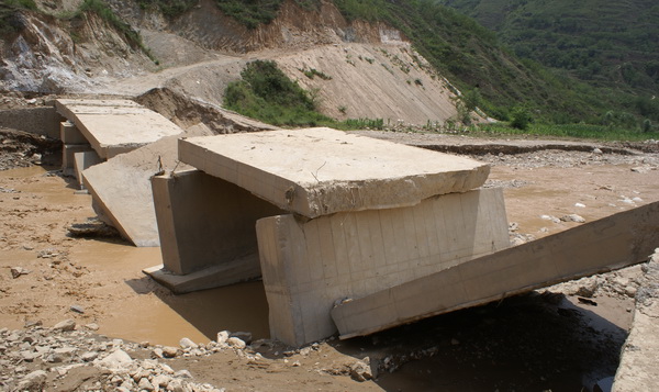 天平鐵路徐倪段一座施工用的便橋被洪水沖毀