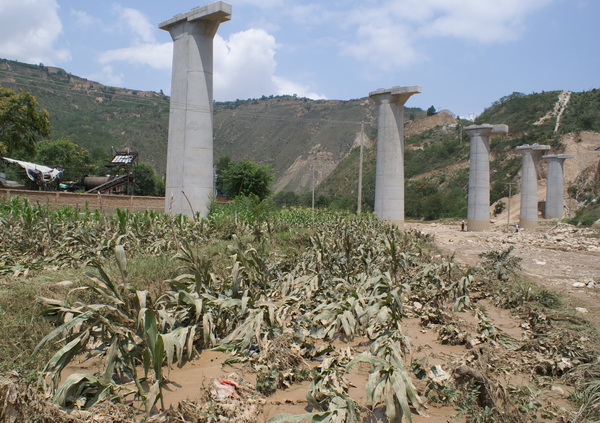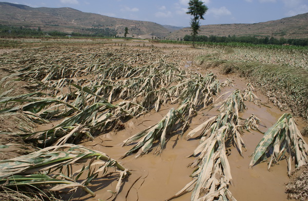 后川河流域受災(zāi)十分嚴(yán)重,沿河道附近的玉米被洪水沖毀
