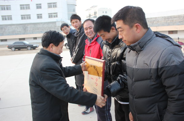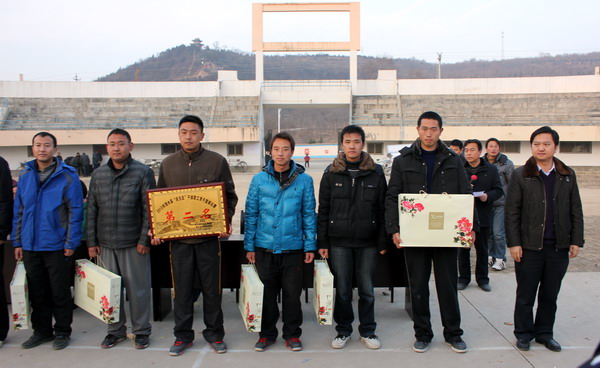 (副縣長何敬忠為獲得二等獎的縣委機關代表隊頒獎)