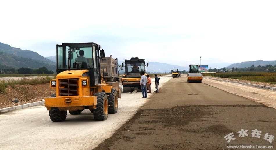 (近日,清水縣溫泉大道正在鋪筑碎石水泥穩(wěn)定基層)