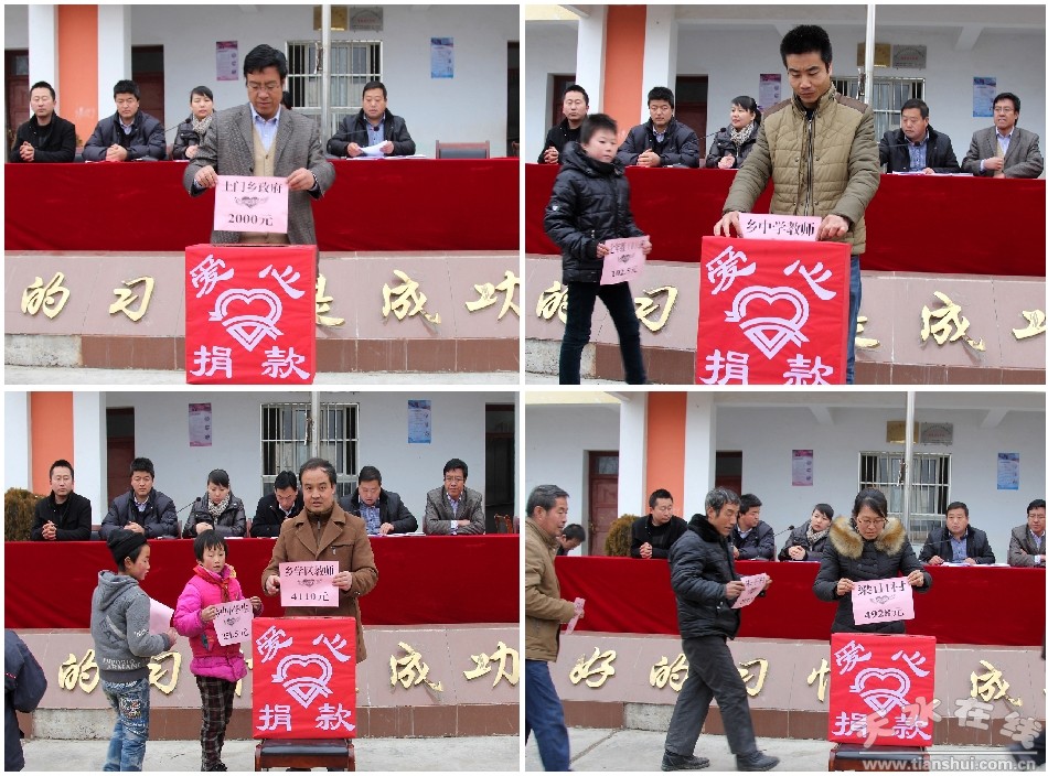 (土門鄉(xiāng)鄉(xiāng)屬單位代表和各學(xué)校師生代表為王書成捐款獻(xiàn)愛心)