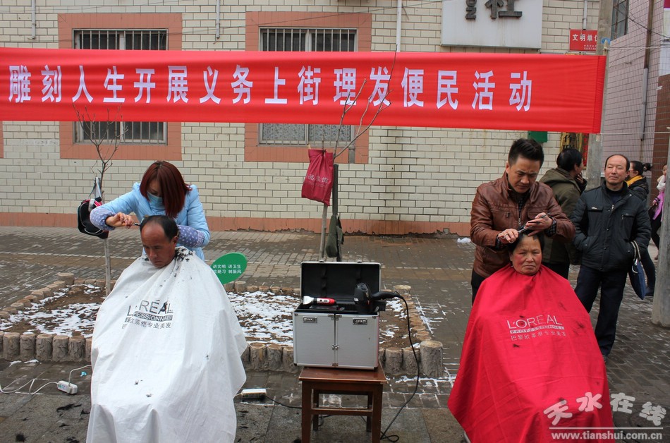 節(jié)氣已到驚蟄了,預(yù)示著萬物復(fù)蘇,春回大地,昨晚落下的雪也在暖暖的太陽的照耀下早已不見蹤跡。3月5日,清水縣信用聯(lián)社總行門前人流涌動,顯示出濃濃的節(jié)日氛圍,原來,清水縣雕刻人生理發(fā)館在這兒設(shè)攤,為過往群眾免費理發(fā),在元宵佳節(jié)為廣大群眾送去節(jié)日的祝福。