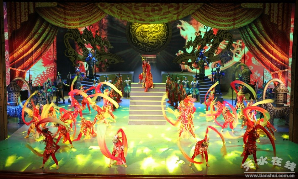 一部大戲即成功創(chuàng)排了西秦腔歌舞傳奇劇《軒轅大帝》。該劇目以本土鄉(xiāng)村文藝工作者等非專業(yè)演員作為全劇演員班底,以歌舞劇形式表現(xiàn)古老秦腔藝術(shù),有機(jī)融合戲曲與歌舞藝術(shù)。整個(gè)劇情不僅彰顯了軒轅故里清水的傳統(tǒng)文化,秉承著“勇于創(chuàng)新、敢于斗爭(zhēng)、艱苦創(chuàng)業(yè)、自強(qiáng)不息”的軒轅文化精神,更處處體現(xiàn)著淳樸、善良、正義等正能量的價(jià)值觀,如同“淳樸誠(chéng)信,尚德務(wù)實(shí),創(chuàng)新超越”的清水新精神,盡顯清水人民熱愛家鄉(xiāng)、建設(shè)家鄉(xiāng)、追求幸福的美好情懷。