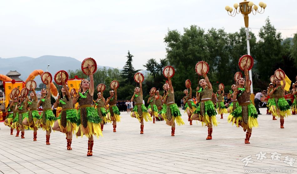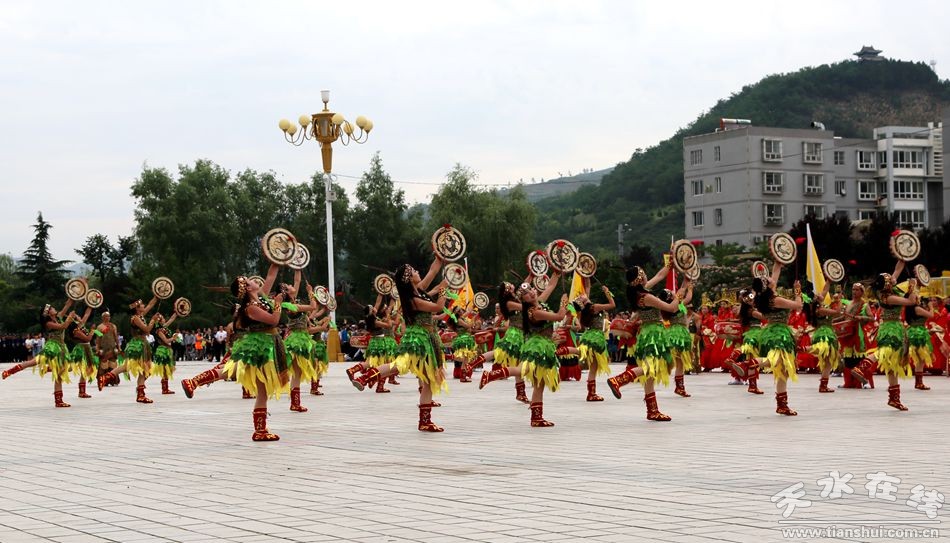 清水軒轅鼓陣容龐大,氣勢(shì)恢弘,由136人組成,以3面大鼓和64名女鼓手為主,以20面平鼓,12面大釙,4面大鑼,24桿軒轅旗為襯托,充分展示了清水人民對(duì)軒轅黃帝的崇敬和禮贊,展現(xiàn)了清水兒女振奮精神,加快發(fā)展的昂揚(yáng)風(fēng)貌。