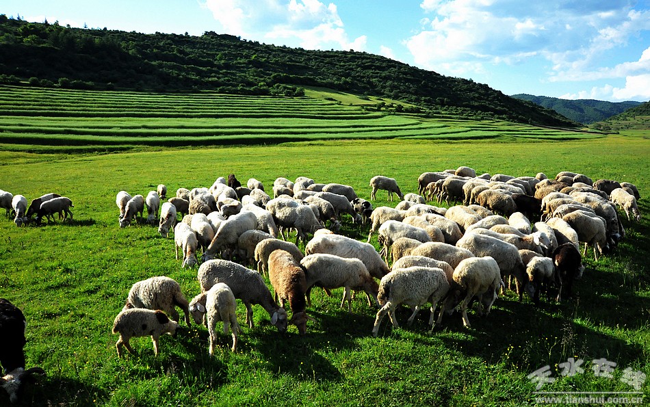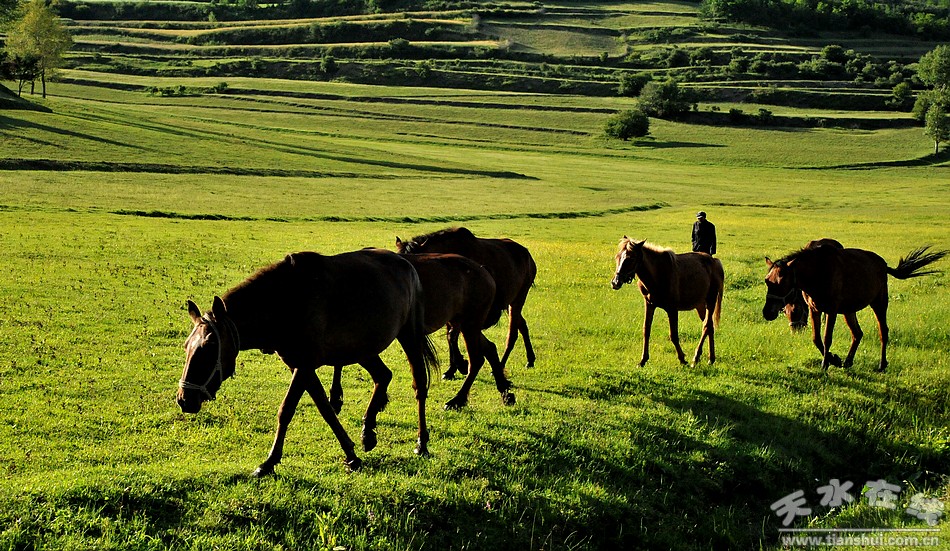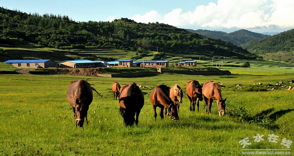 沿著清水縣秦亭公路一路東行,不久就會(huì)進(jìn)入綠色的原野,公路兩邊,天地開闊,丘陵起伏,張呂牧場(chǎng)的美會(huì)一覽無余的展現(xiàn)在你的眼前,讓你頓感大自然的風(fēng)光之美妙。百里牧場(chǎng),綠草茵茵,四周綠樹環(huán)繞,構(gòu)成極具特色的牧場(chǎng)風(fēng)情。牧場(chǎng)里,最多的是散漫其間的馬群和羊群。頭頂藍(lán)天白云,腳下綠野無垠,馬群星散,羊群如織,滿眼里,除了詩情就是畫意!