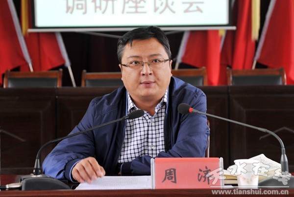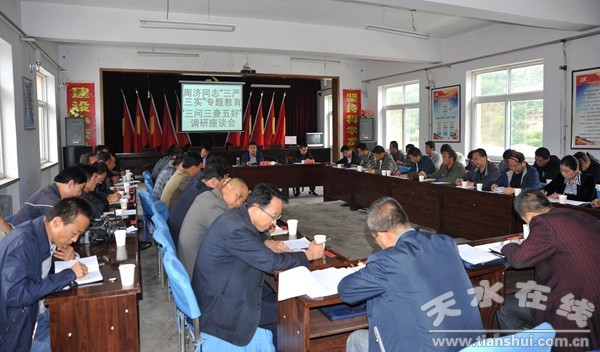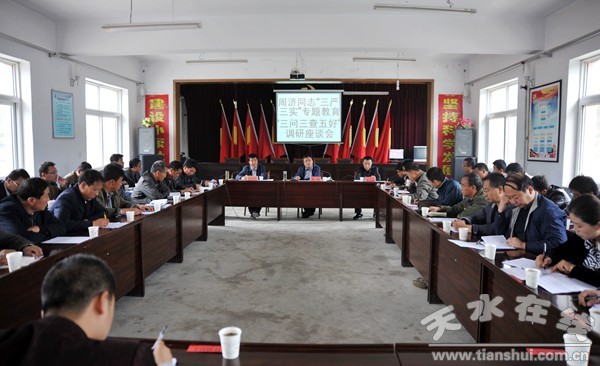 9月21日下午,清水縣委常委、組織部長周濟深入黃門鄉(xiāng)開展“三嚴三實”專題教育“三問三查五好”調研活動,組織召開座談會深入查找專題教育以及精準扶貧工作中存在的問題,與大家共同探討以從嚴從實標準推進精準扶貧等重點工作的方法措施。黃門鄉(xiāng)駐村幫扶工作隊長、副科級以上領導干部、村黨支部書記、鄉(xiāng)屬單位負責人共計40多人參加座談會。