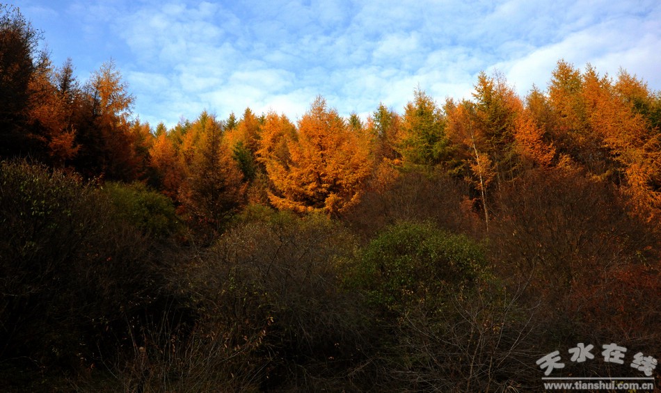 深秋時(shí)節(jié),天高云淡、氣溫宜人,清水縣山門(mén)百里林海一層層、一片片樹(shù)林被染成了淡紅色、金黃色、翠綠色,讓人觀看后十分悅目,成為了清水深秋的一處極致美景,吸引了很多游客來(lái)此地觀賞、旅游、散心。