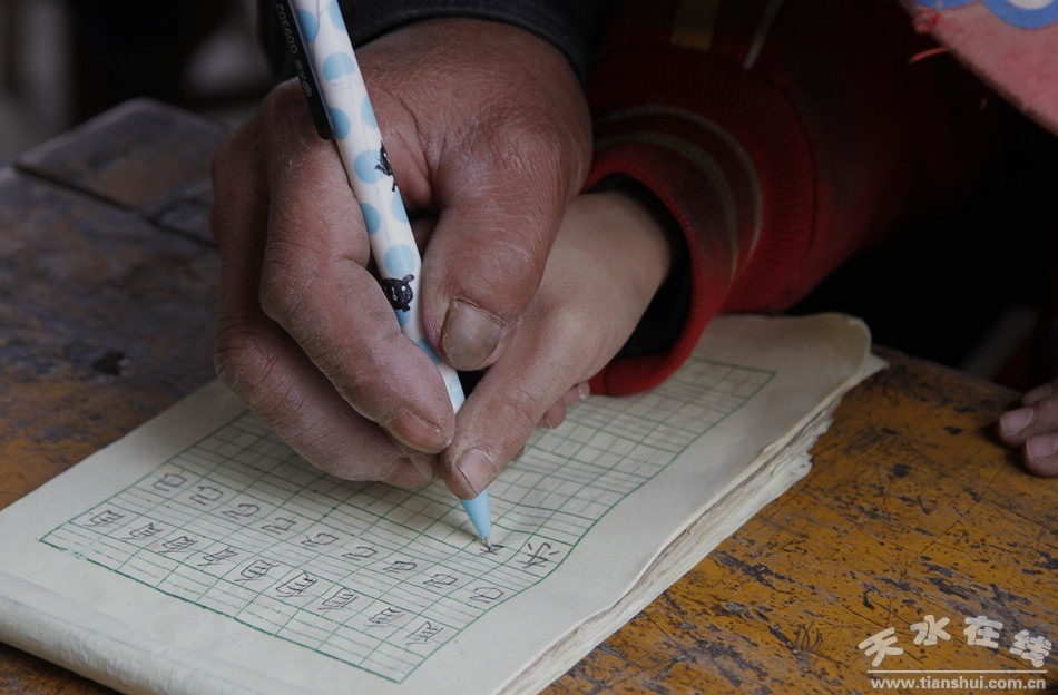 (中午休息時間,吳全祿還在給孩子們輔導(dǎo)作業(yè))