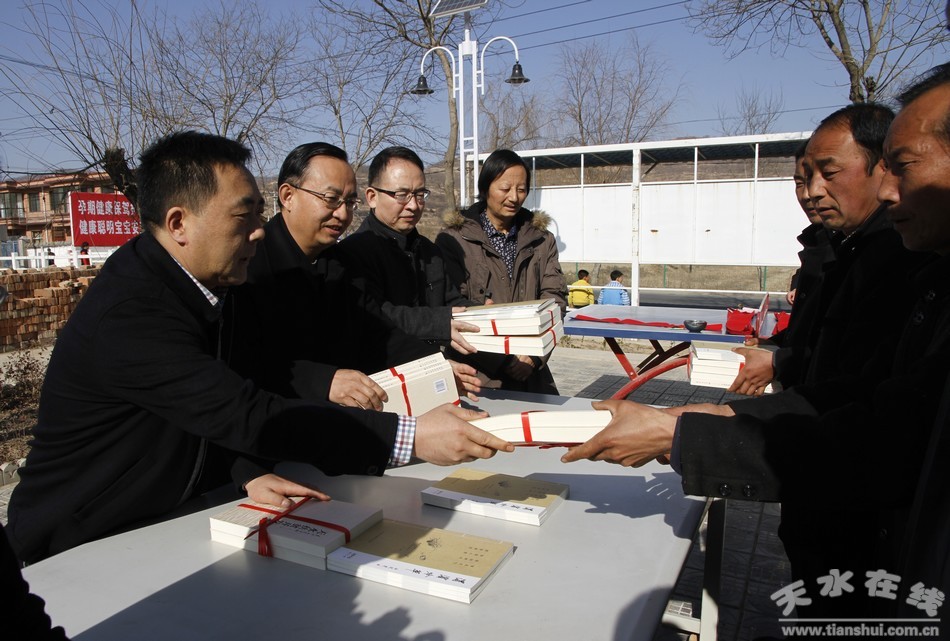 在雙聯(lián)點(diǎn)白沙鎮(zhèn)程溝村委會(huì),王振宇和村干部群眾座談了解了全村經(jīng)濟(jì)發(fā)展,主導(dǎo)產(chǎn)業(yè)培育、勞務(wù)輸轉(zhuǎn)、村容村貌建設(shè)、群眾生活安排、基層組織建設(shè)等方面情況。隨后,組織農(nóng)民群眾在程溝村文化廣場開展了贈(zèng)書活動(dòng),由天水市詩詞學(xué)會(huì)會(huì)員現(xiàn)場創(chuàng)作,朗誦新時(shí)代、向往新生活的詩詞。同時(shí),由天水市楹聯(lián)學(xué)會(huì)會(huì)員書寫春聯(lián),送去了新春的祝福。
