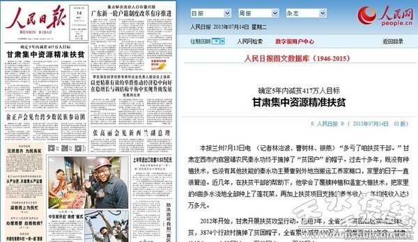 人民日?qǐng)?bào)1月21日以《甘肅:解開(kāi)束縛脫貧的繩索》為題,報(bào)道了甘肅省積極貫徹習(xí)近平總書(shū)記精準(zhǔn)扶貧精準(zhǔn)脫貧指示精神,通過(guò)實(shí)施精準(zhǔn)扶貧專(zhuān)項(xiàng)貸款工程,打通農(nóng)村金融血脈,使困擾農(nóng)民多年的“貸款難、貸款貴”問(wèn)題迎刃而解。其中以清水縣精準(zhǔn)扶貧貸款為事例,作證了甘肅解決農(nóng)民“貸款難、貸款貴”難題。