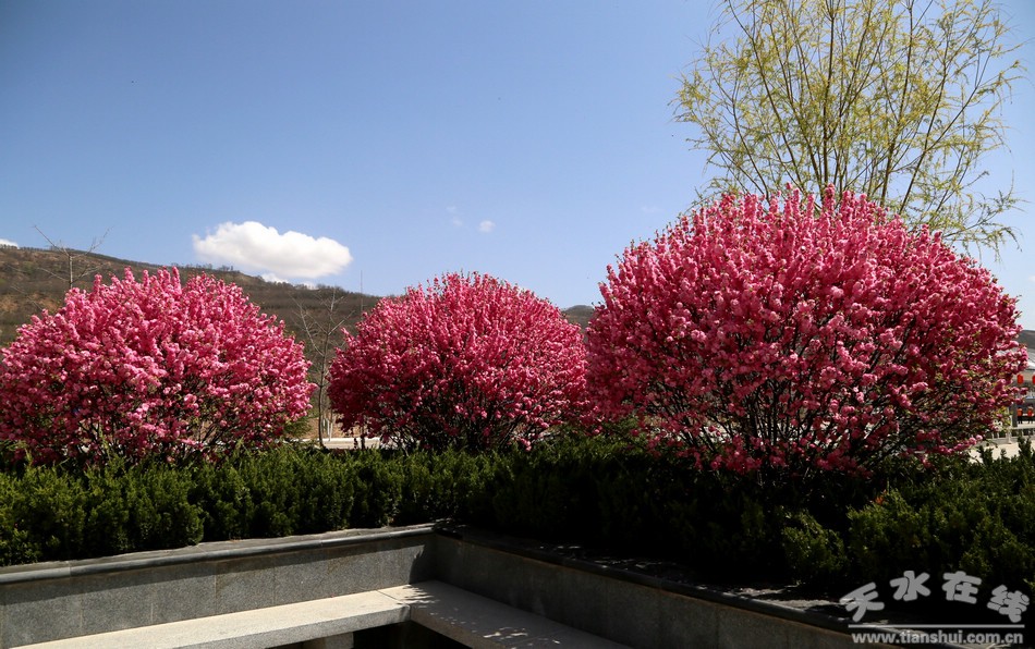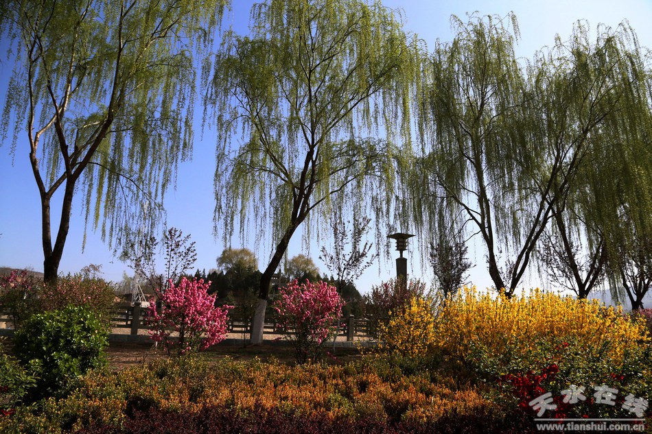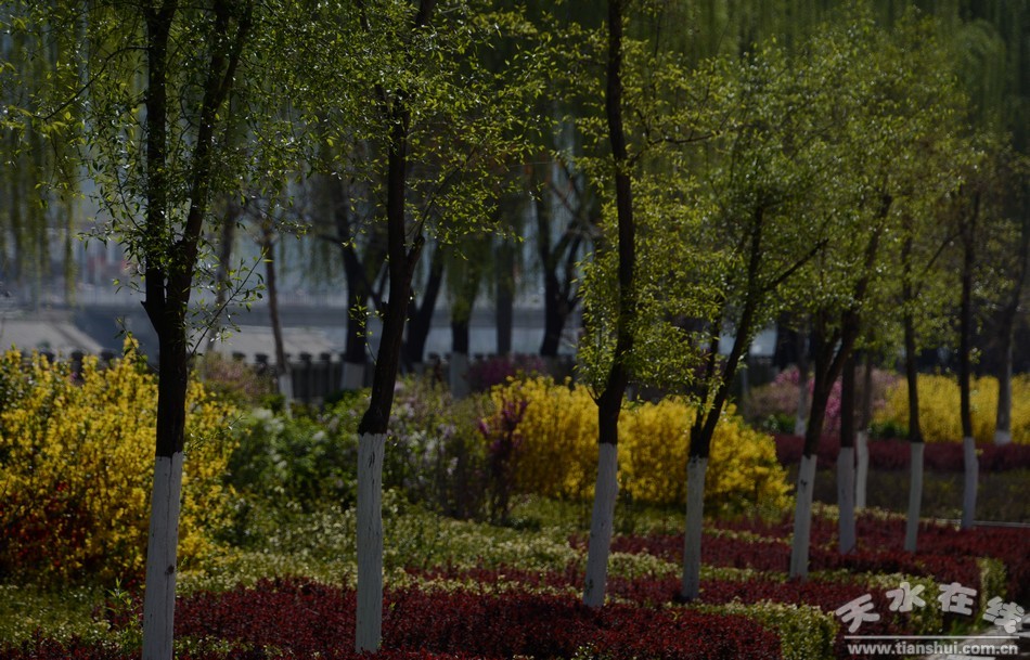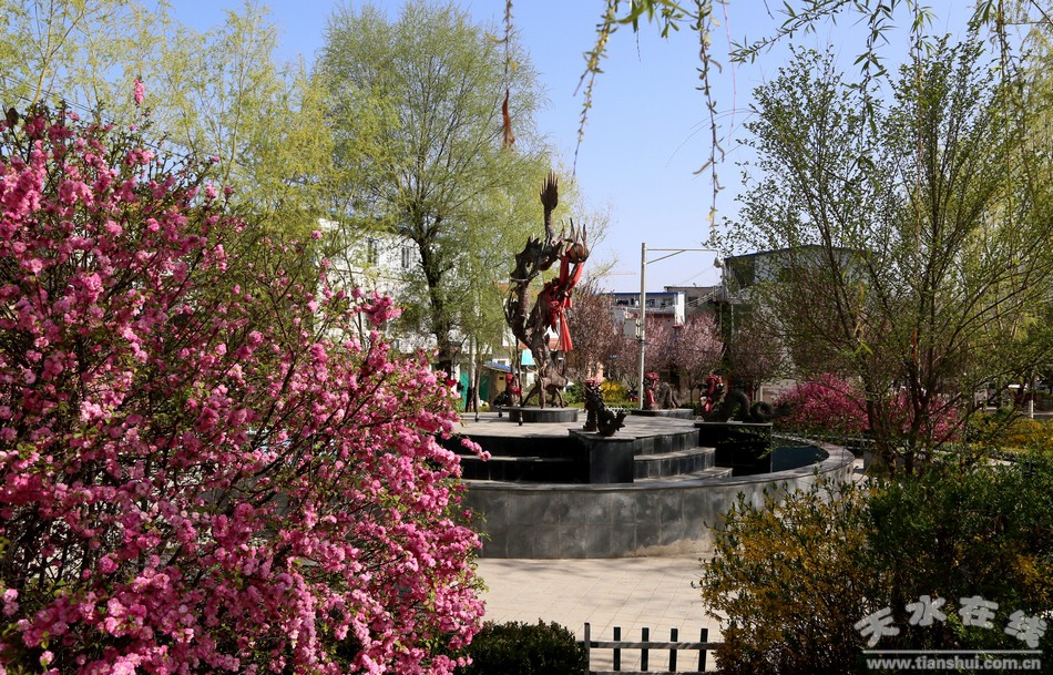 牛頭河十里風情線景區(qū)包括牛頭河南岸全長3760米的景觀、綠化、基礎(chǔ)設(shè)施和構(gòu)筑物建設(shè),西干河口至南道河口牛頭河河道內(nèi)7座水力自控翻板閘壩、軒轅廣場、軒轅景觀橋、紅崖觀山體亮化、軒轅湖及清河灣開發(fā)、充國廣場等工程,已基本形成了以軒轅文化、充國文化為內(nèi)涵,集綠化、亮化、水景觀和文化元素建筑群為一體旅游景觀帶。在城區(qū)綠化過程中,著力在軒轅廣場、軒轅大道、南環(huán)路一帶栽植櫻花、桃花、杏花等,如今,這些花已經(jīng)進入盛花期,成為了市民賞花的好去處,吸引了大量游人前來觀光游玩。