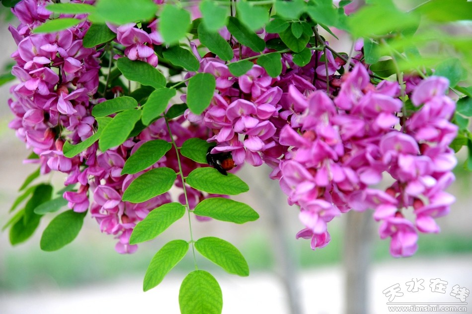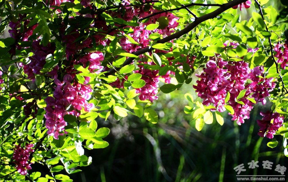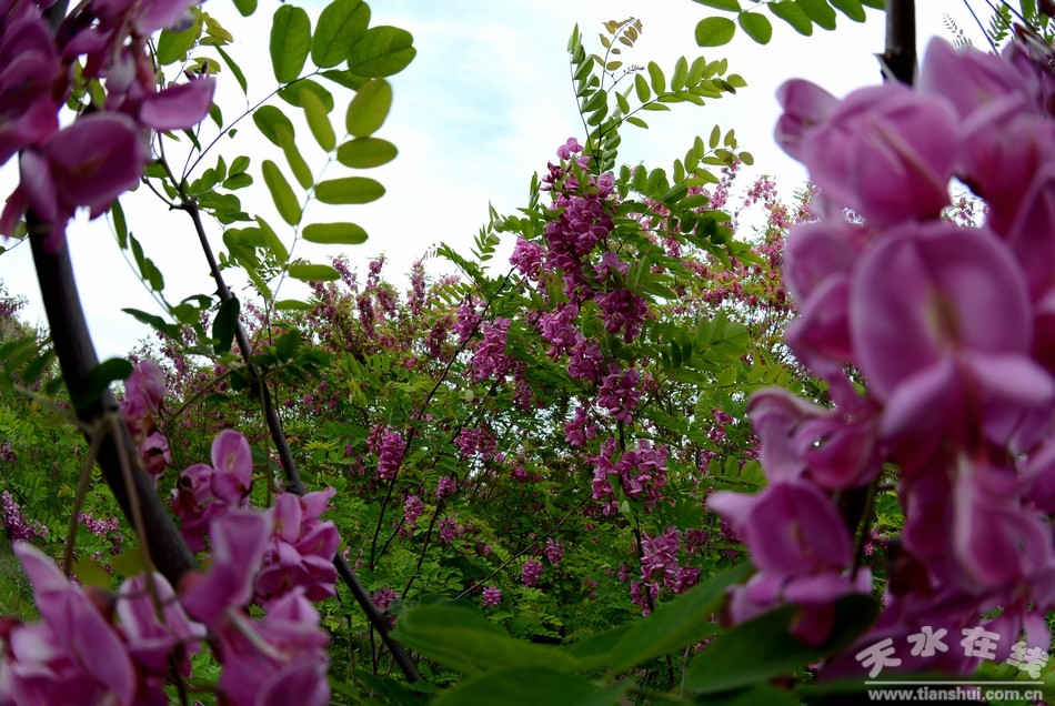 姹紫嫣紅,香飄百里。五月的清水縣香花槐迎來(lái)了花期,槐花飄香、蜂飛蝶舞,紅中帶紫的槐花掛滿枝頭,遠(yuǎn)遠(yuǎn)望去,成片的香花槐林就如同紫云一般,煞是美麗。