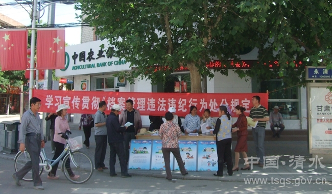 今年6月9日是我國第9個國際檔案日。為深入貫徹落實習近平總書記"讓歷史說話,用史實發(fā)言"的重要指示,清水縣檔案局立足館藏,圍繞"加強民生檔案管理"這一主題,面向社會,用檔案搭建一座政府與百姓的連心橋,創(chuàng)新方式,做優(yōu)服務(wù),提升滿意度,助力清水縣經(jīng)濟社會發(fā)展,6月7日,在縣城永清路舉辦“6.9國際檔案日”宣傳檔案法律法規(guī)“七進”活動。