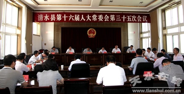 6月17日下午,清水縣人大常委會副主任宋宏亮主持召開第十六屆人大常委會第三十五次會議。縣人大常委會副主任趙愛平、畢德祥、劉志偉及縣人大常委會委員出席會議,縣委常委、常務(wù)副縣長牛永禎,縣法檢兩院及縣直有關(guān)部門、單位負(fù)責(zé)人列席會議。