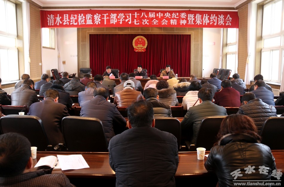 1月20日,清水縣召開紀檢監(jiān)察干部學習十八屆中央紀委七次全會精神暨集體約談會?h委常委、縣紀委書記馬利民出席會議并講話。18鄉(xiāng)鎮(zhèn)紀委書記、紀委副書記,縣直各部門、各單位紀委書記(紀檢組長),縣紀委全體干部參加了集體學習暨集體約談會。