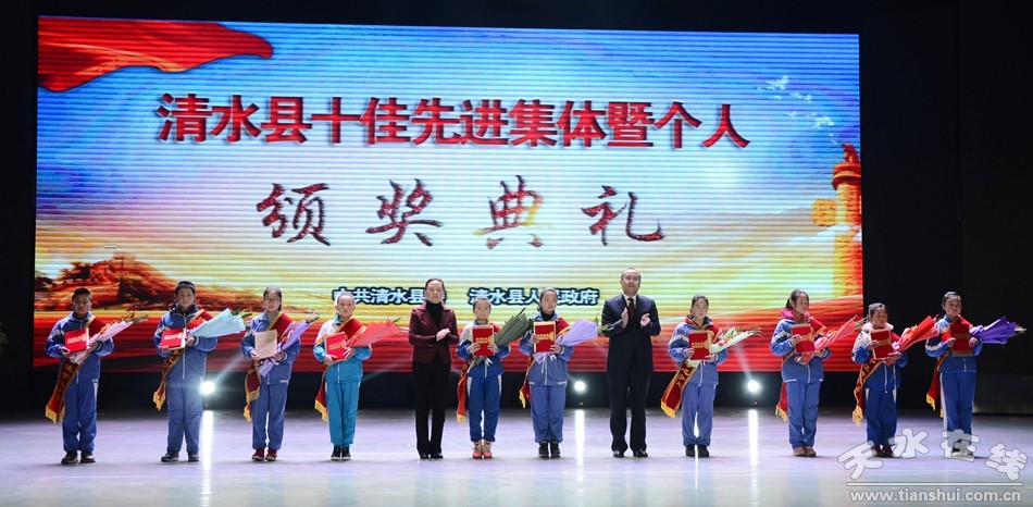 1月18日下午,清水縣隆重舉行2016年“十佳先進集體暨個人”表彰大會暨頒獎典禮,對評選出的“十佳勞動模范”、“十佳醫(yī)護楷!薄ⅰ笆哑桨残l(wèi)士”、“十佳最美教師”、“十佳美麗鄉(xiāng)村”、“十佳愛心人士”、“十佳創(chuàng)業(yè)(產業(yè))先鋒”、“十佳賢惠媳婦”、“十佳孝心少年”、 “十佳清水好人”共122個群眾公認、在全縣經濟社會發(fā)展中做出突出貢獻的先進集體及個人頒發(fā)了獎牌和榮譽證書。