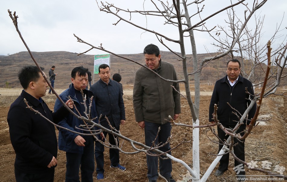有沒有產(chǎn)業(yè)支撐,是決定農(nóng)民增收致富的關(guān)鍵。王軍先后深入永清鎮(zhèn)蘇屲東山梁核桃套種連翹項目基地、白沙鎮(zhèn)趙溝流域千畝優(yōu)質(zhì)核桃管理示范點(diǎn)、白駝鎮(zhèn)化嶺灣核桃園套種連翹項目、王河鎮(zhèn)魏灣村核桃園管理示范點(diǎn)、王河鎮(zhèn)南灣梁核桃園管理示范點(diǎn)、郭川鎮(zhèn)宋川村千畝優(yōu)質(zhì)蘋果示范點(diǎn)等地,實(shí)地察看了解清水縣干鮮果產(chǎn)業(yè)發(fā)展情況。王軍指出,清水縣在林果產(chǎn)業(yè)發(fā)展上定位高、決心大,標(biāo)準(zhǔn)化建園工作成效顯著,林果產(chǎn)業(yè)已成為當(dāng)?shù)厝罕娫鍪罩赂坏脑援a(chǎn)業(yè)。要立足縣情、鄉(xiāng)情、村情實(shí)際,依托現(xiàn)有基礎(chǔ),彰顯特色優(yōu)勢,認(rèn)真落實(shí)農(nóng)業(yè)產(chǎn)業(yè)化發(fā)展的相關(guān)政策措施,充分調(diào)動群眾發(fā)展產(chǎn)業(yè)的積極性;要培育扶持一批重點(diǎn)龍頭企業(yè),延長產(chǎn)業(yè)鏈條,提高經(jīng)濟(jì)效益;要加強(qiáng)技術(shù)支持,教育、引導(dǎo)農(nóng)民群眾做好果樹建園和果園后期管理,切實(shí)把核桃、蘋果等林果產(chǎn)業(yè)做大做強(qiáng),真正成為群眾增收致富的搖錢樹;要大力推廣干鮮果基地套種連翹、半夏等中藥材種植模式,有效打造創(chuàng)新性復(fù)合經(jīng)濟(jì)林和區(qū)域生態(tài)林,實(shí)現(xiàn)生態(tài)、社會、經(jīng)濟(jì)三大效益。