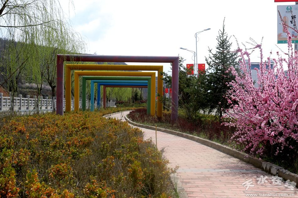 牛頭河十里風(fēng)情線景區(qū)包括牛頭河南岸全長3760米的景觀、綠化、基礎(chǔ)設(shè)施和構(gòu)筑物建設(shè),西干河口至南道河口牛頭河河道內(nèi)7座水力自控翻板閘壩、軒轅廣場、軒轅景觀橋、紅崖觀山體 化、軒轅湖及清河灣開發(fā)、充國廣場等工程,已基本形成了以軒轅文化、充國文化為內(nèi)涵,集綠化、亮化、水景觀和文化元素建筑群為一體旅游景觀帶。在城區(qū)綠化過程中,著力在軒轅廣場、軒轅大道、南環(huán)路一帶栽植櫻花、桃花、杏花等,如今,這些花已經(jīng)進(jìn)入盛花期,成為了市民賞花的好去處,吸引了大量游人前來觀光游玩。