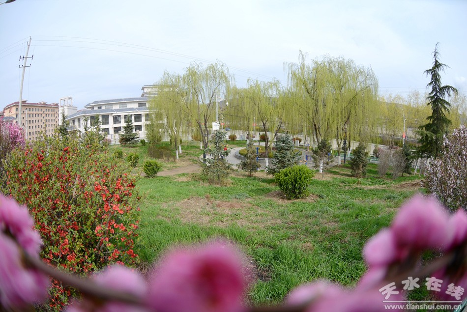 最美人間四月天,漫步在清水的軒轅廣場、軒轅湖畔,竟有些如癡如醉了。片片櫻花在風(fēng)中婀娜著,白花瓣透著粉紅,晶瑩淡雅,美麗得纖塵不染。飄落的桃花仿佛舞著的精靈,劃過人的發(fā)梢,繞著人的衣角,香了風(fēng),也香了人衣裳。