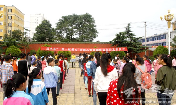 日前,清水縣“一對一獻愛心”貧困兒童資助協(xié)會舉行2017年秋季物資集中發(fā)放儀式,現(xiàn)場為18鄉(xiāng)鎮(zhèn)128名受助學(xué)生發(fā)放救助金12.68萬元,價值3萬元的學(xué)習(xí)生活用品等物資。