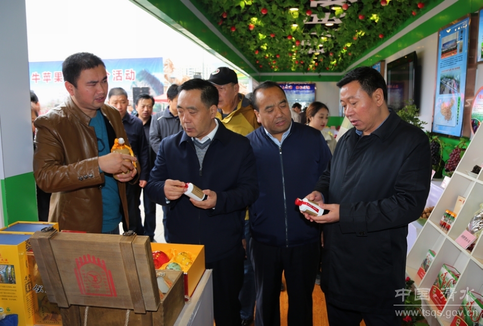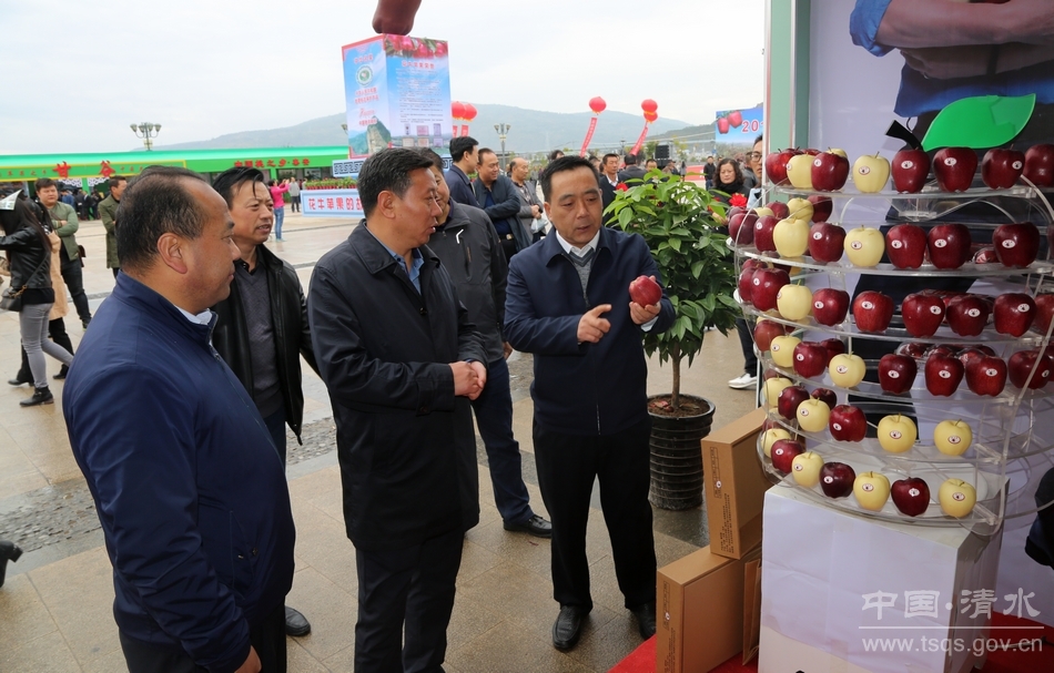 宣傳推介活動(dòng)開幕式結(jié)束后,省政協(xié)副主席張世珍在市委副書記、市長王軍等領(lǐng)導(dǎo)的陪同下,參觀了清水縣果品展館。清水縣委副書記、縣長馬越垠向張世珍一行詳細(xì)介紹了清水縣蘋果產(chǎn)業(yè)發(fā)展現(xiàn)狀和蘋果銷售狀況。