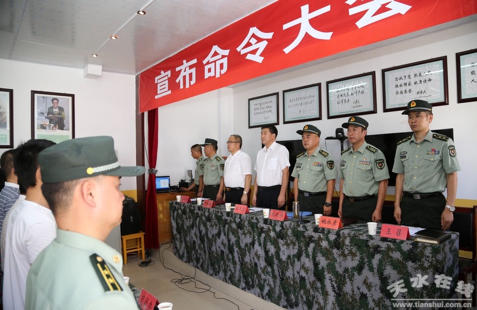 8月9日,清水縣人武部召開任職命令宣布大會(huì)。天水軍分區(qū)政委袁敬偉宣布中央軍委國(guó)防動(dòng)員部命令:王召同志任清水縣人武部政委。