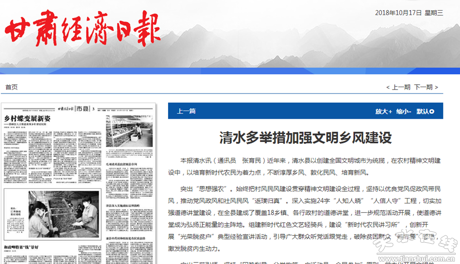 近年來,清水縣以創(chuàng)建全國文明城市為統(tǒng)攬,在農(nóng)村精神文明建設(shè)中,以培育新時代農(nóng)民為著力點(diǎn),不斷淳厚鄉(xiāng)風(fēng)、敦化民風(fēng)、培育新風(fēng)。