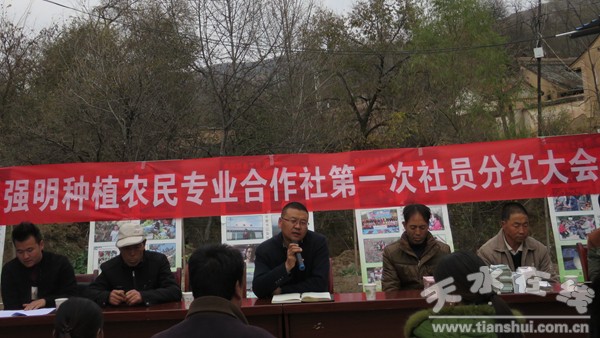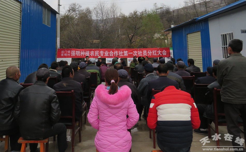 11月7日,清水縣遠(yuǎn)門鎮(zhèn)夜明村舉行“三變”改革分紅儀式。這是遠(yuǎn)門鎮(zhèn)夜明村強(qiáng)明種植農(nóng)民專業(yè)合作社成立運(yùn)營(yíng)以來的第一次分紅,讓貧困群眾作為股東在“三變”改革中獲得了實(shí)實(shí)在在的收益。