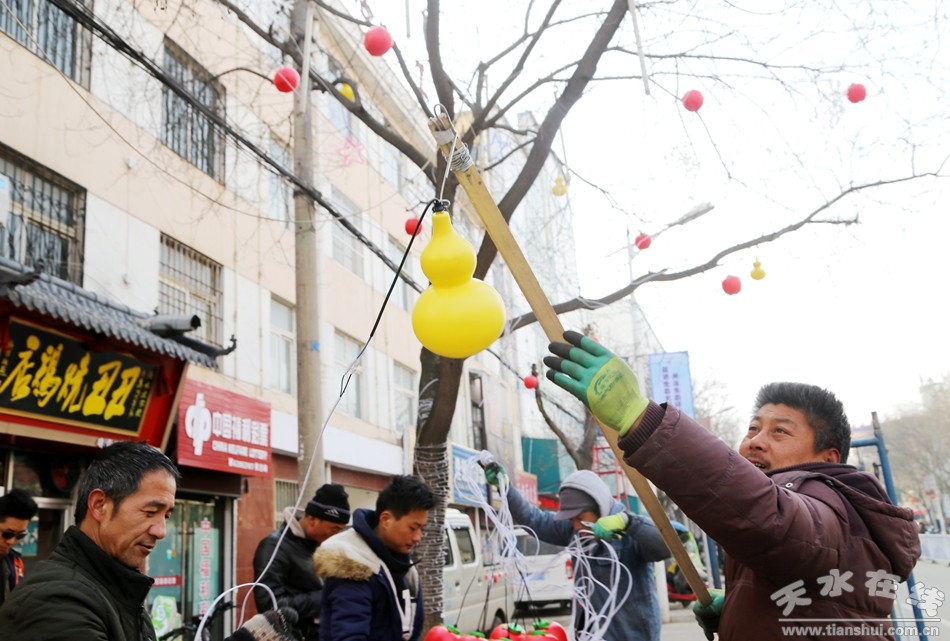 春節(jié)臨近,清水縣街頭巷尾節(jié)日氣氛越來(lái)越濃。在城區(qū)主要路段看到,工人師傅們正在緊張有序的掛著燈籠,一個(gè)個(gè)象征喜慶祥和的大紅燈籠安裝在道路兩側(cè),火紅的燈籠將縣城妝點(diǎn)一新,營(yíng)造出濃厚的節(jié)日氛圍。