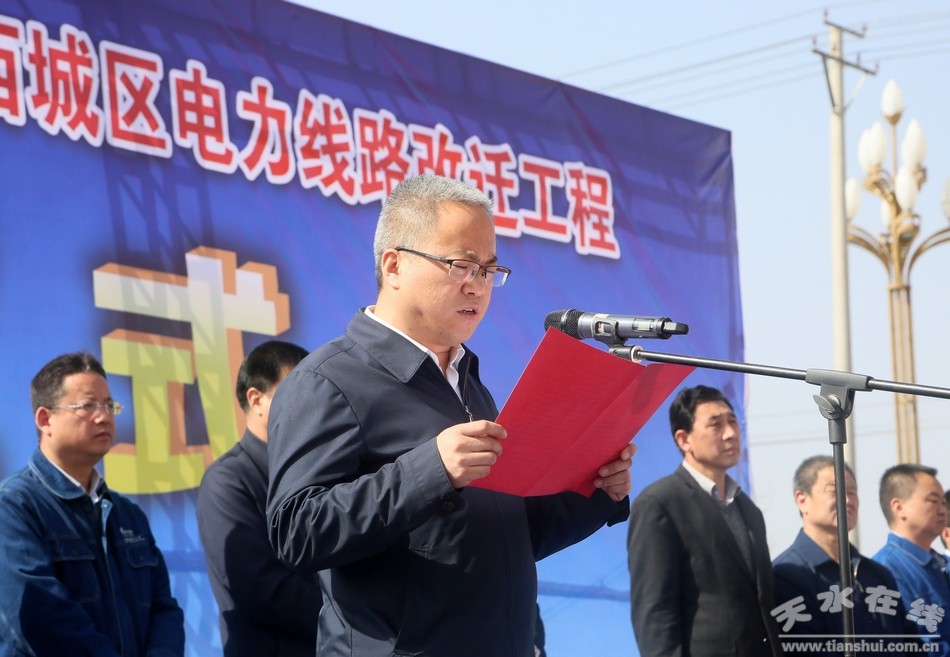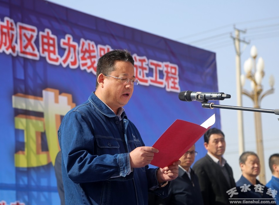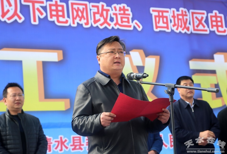 (市人大常委會副主任、清水縣委書記劉天波宣布清水縣2019年10千伏及以下電網改造和西城區(qū)電力線路改遷工程開工)