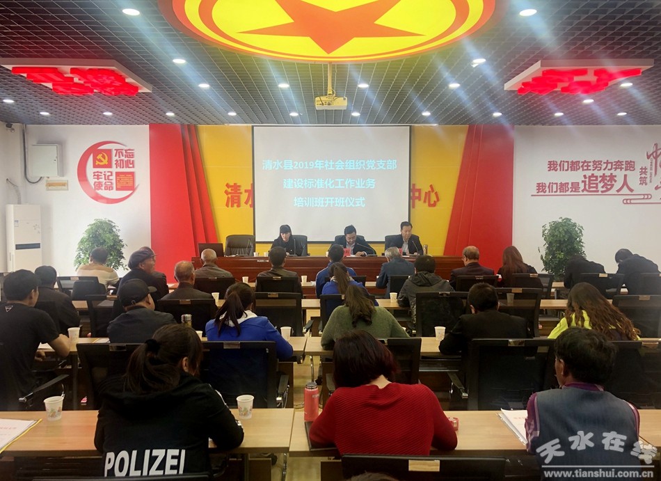 為認(rèn)真學(xué)習(xí)貫徹黨的十九大精神和習(xí)近平新時(shí)代中國特色社會(huì)主義思想,加強(qiáng)清水縣社會(huì)組織黨支部建設(shè),以黨建為抓手助推精準(zhǔn)扶貧,引領(lǐng)精神文明建設(shè)等各項(xiàng)工作。近日,清水縣2019年社會(huì)組織黨支部建設(shè)標(biāo)準(zhǔn)化工作業(yè)務(wù)培訓(xùn)在新時(shí)代文明實(shí)踐中心開班宣講。草食畜牧產(chǎn)業(yè)發(fā)展協(xié)會(huì)、趙那農(nóng)民文體學(xué)校、永清鎮(zhèn)育苗幼兒園、老年養(yǎng)護(hù)院、金集鎮(zhèn)果農(nóng)協(xié)會(huì)等來自全縣33個(gè)社會(huì)組織的黨支部書記、黨務(wù)干部共計(jì)50余人參加了培訓(xùn)。