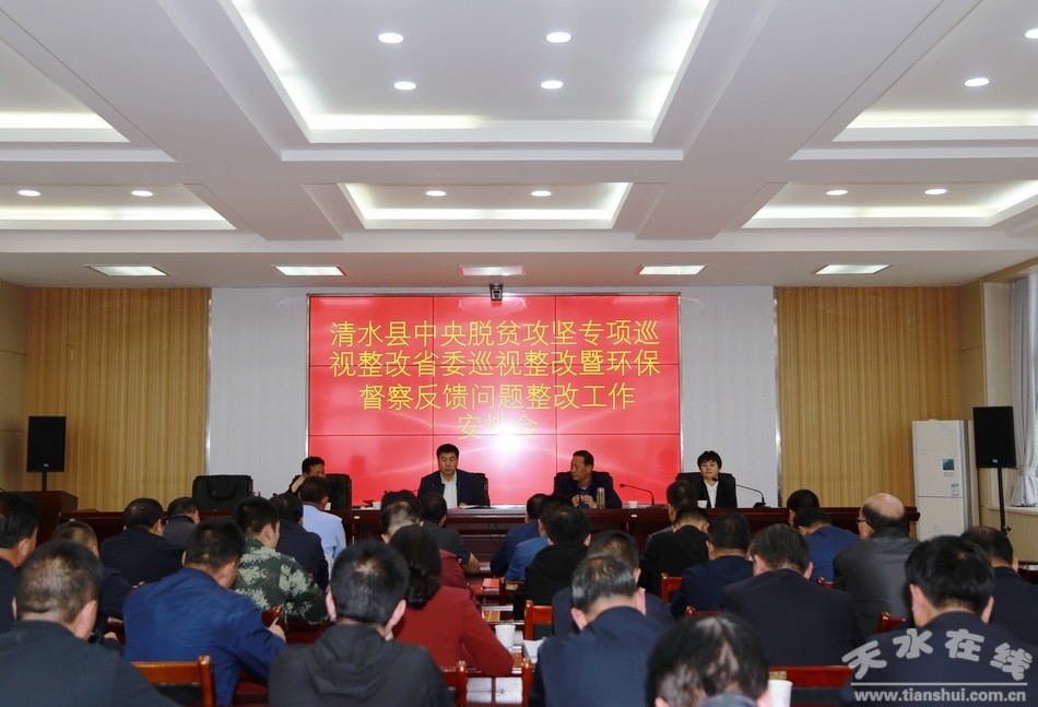 5月29日下午,市人大常委會(huì)副主任、清水縣委書記劉天波主持召開中央脫貧攻堅(jiān)專項(xiàng)巡視整改省委巡視整改暨環(huán)保督察反饋問題整改工作安排會(huì)。縣委常委、副縣長(zhǎng)秦永斌,縣委常委、政法委書記王懷珍,副縣長(zhǎng)、縣公安局長(zhǎng)李寶玲出席會(huì)議;縣直有關(guān)部門及18鄉(xiāng)鎮(zhèn)負(fù)責(zé)人參加會(huì)議。